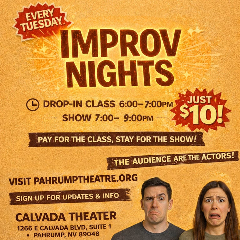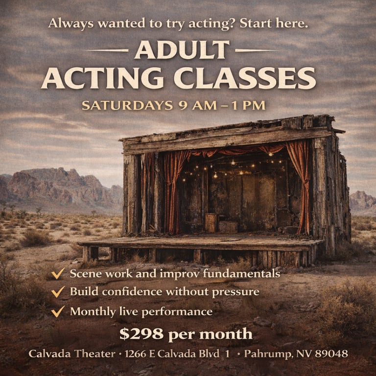 Pahrump Theatre Company aims to become the premier theatrical and entertainment hub in Pahrump, NV. Our focus is on providing high-quality theatrical productions that inspire our youth and cater to the community's interests, including modern, new works, and classic plays.